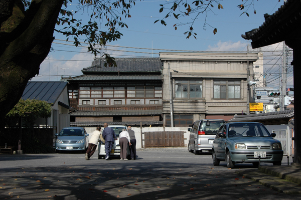 雲龍寺 お寺で昼食 ある民家を調査中、どこで昼食のお弁当を食べようかと境内をウロウロしていると、 清掃のおじさんが 「お弁当ですか?こっちへどうぞ」 と、ベンチを持ってきてくれました。 嬉しいなぁ、と腰掛けて調査中の民家を眺めていると、 住職と何人かのおじさんたちが、 バッテリーのあがってしまった車を移動させていました。 秋晴れの天気も相まって、ほのぼのとしたお昼時間。 境内は公園みたい。