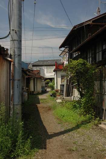 路地の出口、通りを挟んで洋風下見の外壁に瓦屋根の乗った面白い医院が見えます。 ちょっと前までは、こんな風な、旧市街の要所要所にそれぞれ「クセ」のある「まちかど」っていうものがあって、近所の人たちの生活の目印になっていました。 それだけじゃなくて、その「クセ」は町並みにリズムを与えて、歩いていて楽しいし、それが深みとなって、町がぐっと魅力的になると思います。 最近の区画整理で道路が広がって、それに沿った商店・住宅が無味乾燥で味も素っ気もない状態と、旧市街のような「クセ」のある町並みは、ちょうどビジネスホテルとクラシックホテル、例えば日光金谷ホテルの関係に似ていると思いました。 さっぱりと、泊まった記憶さえ忘れてしまうホテルと、泊まること自体が目的になったり、更には長い間印象や思い出に残るホテル。 鹿沼の旧市街はビジネスホテルにはしたくないなぁ、と思います。