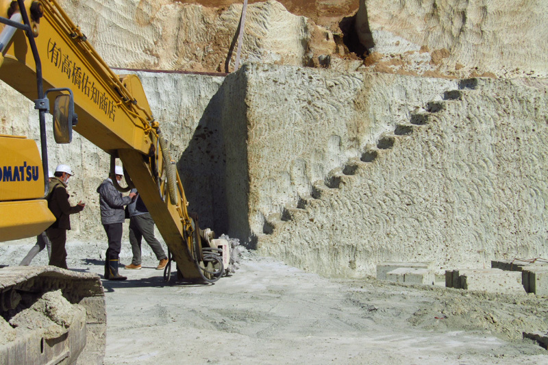 有限会社カネホンさんの、大谷石の露天掘り採石場を見学させていただく.