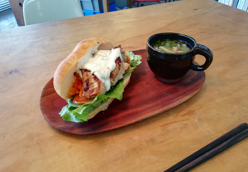 今日はメンバー皆休みで、事務所には僕一人である. 隣室のMADOではコブルの中尾さんが店を開けている、写真は発注したチキンサンドである.(うまい!) 平らげた頃、上野の住まいのクライアント、Sが来る. Sは中高の同級生、今日はまとまった見積り図一式を渡すために来てもらった. まずは珈琲でも飲むかとSをコブルに連れていくと、カウンターにいた一人客とSが顔を見合わせている、 そう、その客もSと高校の同級生(つまり僕とも)で、その偶然に中尾さん含め大笑い、 そのままカウンターでしばし昔話、相変わらず僕は中高の記憶があまりない、同級二人の話に記憶が追い付かない. 僕が設計者だと知った同級客は去り際、自宅外構について相談があるというから週明け現地で会うことになる.