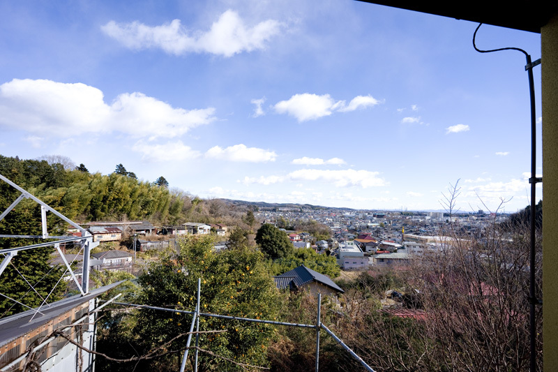 坂の上スタジオの寝室から見える景色、庭は先日、脇本さんが少し手を入れてくれたばかり。 表情の硬かった既存の庭を、彼は、解きほぐすように、風が見えるように植栽に少しづつ手を入れている、 すぐには無理だが、隣地の大きなサクラたちと連続するような庭にしていきたいと彼と話している。 庭の先、眼下には旧市街そしてその向こうの上野台地、宇都宮、茨城の山々が見えるな、 大きな移動を控える年末年始、
