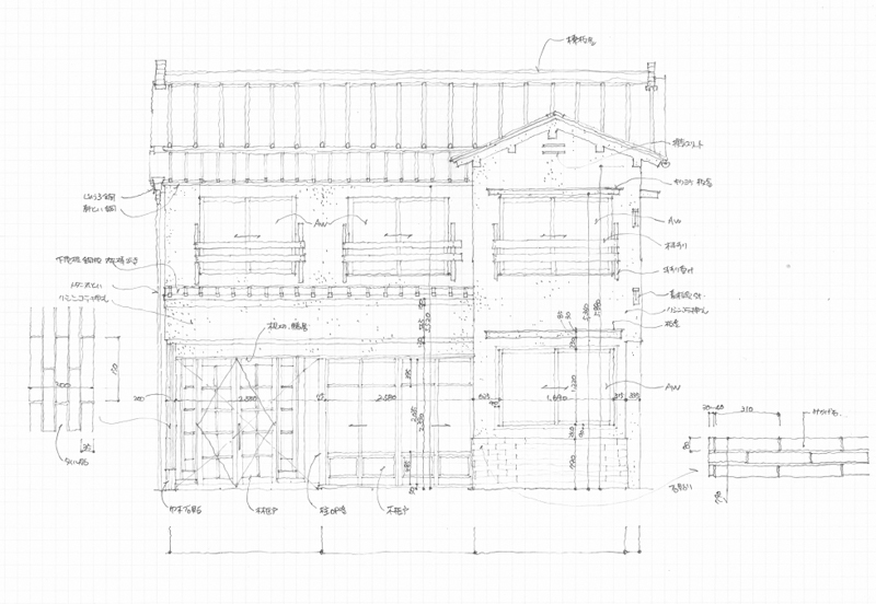 建築家の仕事は建築を設計することである。建築はそこを使う人のこれからの時間を支えるものである。 建築を設計することは、未来を設計することである。 設計する、つまり設計図面を描くということは、 未来のことだけを描いているのかというとそうでもないようである。 設計図面を描くということは、過去も含んで描いているように思う。 新築であればその建築が建つ場所が経た長い時間、 改修であればそこにある建築と過去の住み手の使い方や思い出のようなもの、 そういう過去、彼らの意思をすくいあげるように未来を描いている。 彼らの意思とは、つまり彼らの、こう生きたい、という思いである。 建築を設計することは、過去の人そしてこれから生きる人の意思を形にすることである。 時間を超えて交錯する彼らの、こう生きたい、という意思を形にすることである。 でも、今の私たちのまちや家を見てみると、そういう、意思、はほとんど感じることができなくなっている。 家が、こう生きたい、という意思から、できていないように見えるのである。 では何でできているように見えるかというと、機能と空間である。(機能はソフトともいうし、空間はハードともいう) 食べる、寝る、勉強する、テレビを観る、スマホを触る、これらはすべて機能である。 健康とか、掃除がしやすいとか、家事動線が単純化されているとか、 メンテナンスフリーであるとか、プライバシーが守られているとか、これらもすべて機能である。 空間はただただその機能を雨風から守っている。 家のバリエーションといえば、その機能と空間の配列の微妙な違いだけである。 住まいには機能と空間があれば十分である、ほとんどの人がそう思っている。 でも、本当にそうか。 機能と空間に加えて意思がなければ、人はただ、その時間を生きているだけになってしまうのではないか。 意思がなければ、人の営みは時間を超えて受け継がれていかない、 この数日、そういうことを考えている。 この、時間を超える意思、について考えると僕は、加藤さんが頭に浮かぶ。 加藤さんは、僕の20上の先輩であり友人でもある建築家である。 加藤さんと初めて会ったのは、10年くらい前、 彼が栃木市で「まちのみかた」というまち歩きイベントを開催したときである。 (僕はゲストスピーカーの一人として参加していた) 参加者各々まちを歩き、興味をもった部分を撮影して 皆に、なぜ興味を持ったのかをプレゼンテーションし合う企画だった。 その後、加藤さんと会うと話題になるのは、 彼がライフワークとして取り組んでいた古い住宅の数々の実測についてだった。 彼の事務所の壁には、どこかの古い建築物を実測した野帳が貼りつけてあって 見ると、フリーハンドの鉛筆で微細に描き込まれた線や寸法に加えて 小屋裏や床下などで付いたのだろうホコリで真っ黒になっている。 彼はその野帳のそこここを指さして、ここはいつ頃の改修の跡だとか、 この部材は他所から持ってきたはずだとか、そういう考察を熱心に教えてくれた。 まちのみかた、そして彼が取り組んだ一連の実測はまさに まちや建築物から、時間を超えた意思を発見する作業である。 声なき過去に目を向け、「みかた」や野帳を通じて彼は、過去の意思たちを発見していたのである。 彼が設計する新しい空間に共存する人懐こさと新しさは きっと過去の意思を引き受けて、現在の私たちに空間を通じて投影してくれるからである。 加藤さんに一度だけ、皮肉を言われたことがある。 カラー3色使いの、僕の実測野帳を見せたときのことである。 (僕は見やすい記録の仕方として線を黒、タテ寸法を赤、ヨコ寸法を緑で描いていた) 実測野帳は黒一色で描かないとね、黒一色でも、きちんと判読できるよう レイアウトしながら描くことも、良い実測の内だよと嫌味っぽく言うのである。 そのときは、見やすい方がいいじゃないかと内心思ったのだが 客観的に記録するように描くのではなく、記録者が主体になって経験するように描け、 そのくらい没頭しないと意思は発見できないという加藤さんの教えだったのではないか、と今思う。 加藤さんは、過去と未来を含んだ建築家を、まさに実践していたと思う。 加藤さんが亡くなったと知ったのは2020年12月20日の朝である。 そのときから、僕は加藤さんのことをずっと考えている。考えているだけではなくて、彼と話をしている。 彼と話すことができるのは、彼の意思を残された僕らが理念として受け取れるからである。 意思は時間を超えて理念として生き続ける、 彼の理念は、機能と空間を超えた、次の社会をつくるヒントをくれると思っている。 機能は作法に、空間は場になるはずである、そういうまだぼんやりとした感覚を、12月27日の彼は教えてくれた。