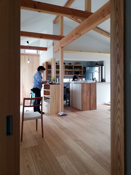花岡のカフェ+住まいが竣工し、オーナーは7/3のオープンの準備に大忙しである.