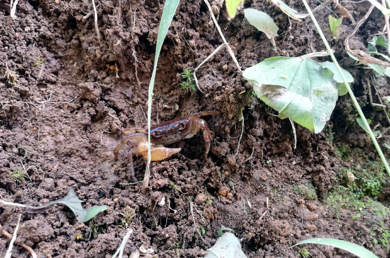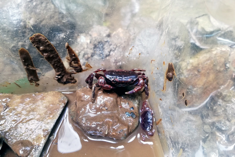 久我に幼少のころから家族に連れられて行っていた沢があって、その沢は今もあまり変わらない姿でそこに流れている. 暑いので、家族を連れて、その沢を裸足で登っていく、 石をめくると沢蟹がいて、てんぷらにしたら美味しそうだなと頭をよぎるが やはり沢に帰してまた来ようと思う、