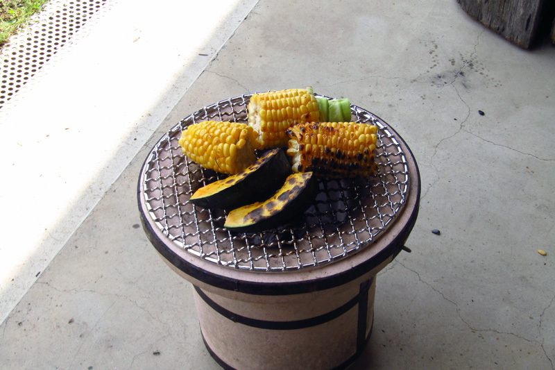 もらった七輪で、このあと、近所の肉屋で切ってもらった牛肉を食べる、