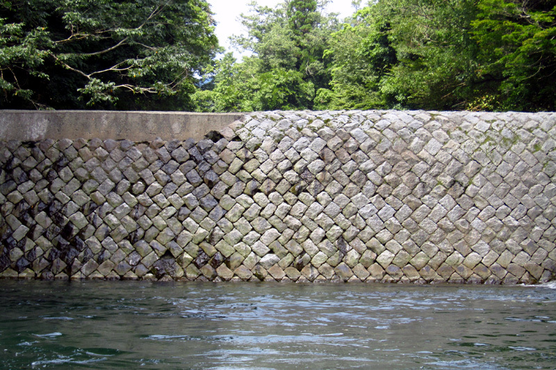 板荷の、初めて行く川を散策して、最後に突き当たった石積み堰、